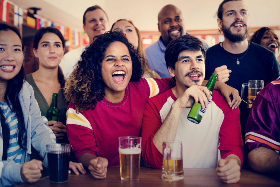 Friends cheering sport at bar together